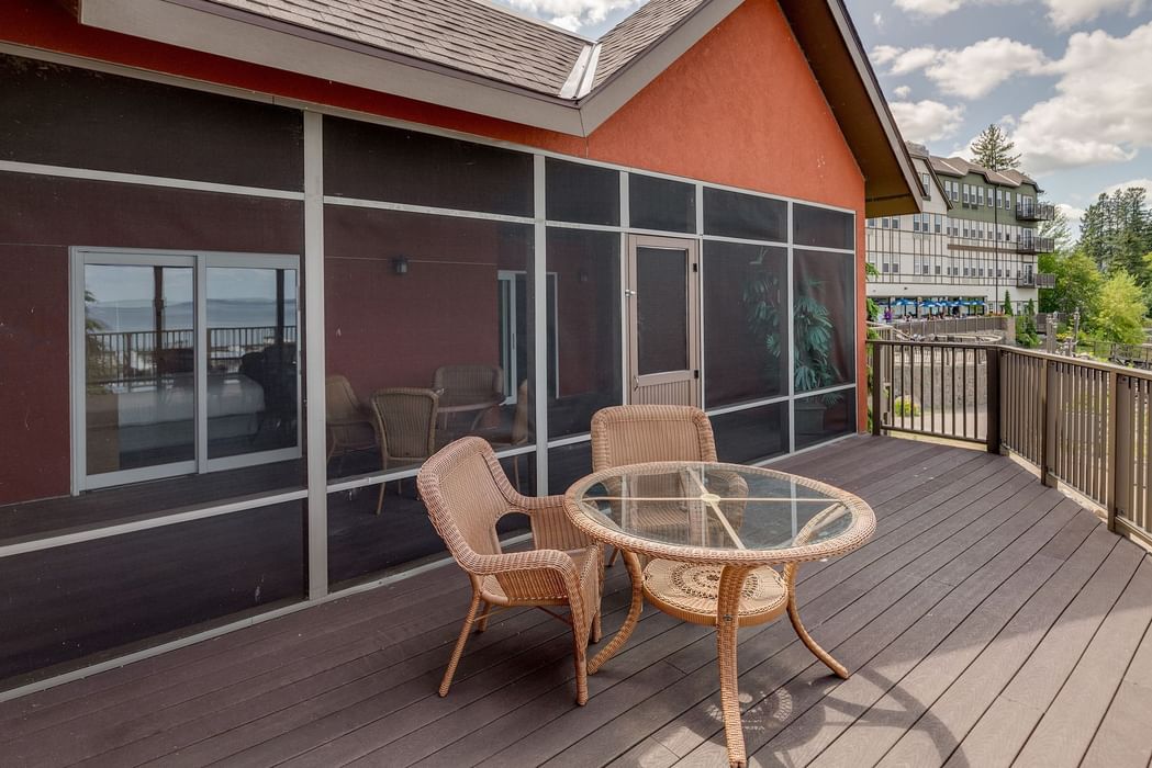 A spacious three-bedroom, two-bathroom retreat that sleeps eight guests with an outdoor living space including a partial view of the lake. Please note: No pets allowed in any of the units within this building.