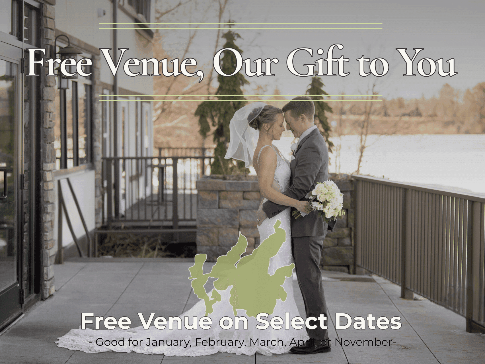 Book your wedding in January, February, March, April, or November and enjoy a FREE venue rental.